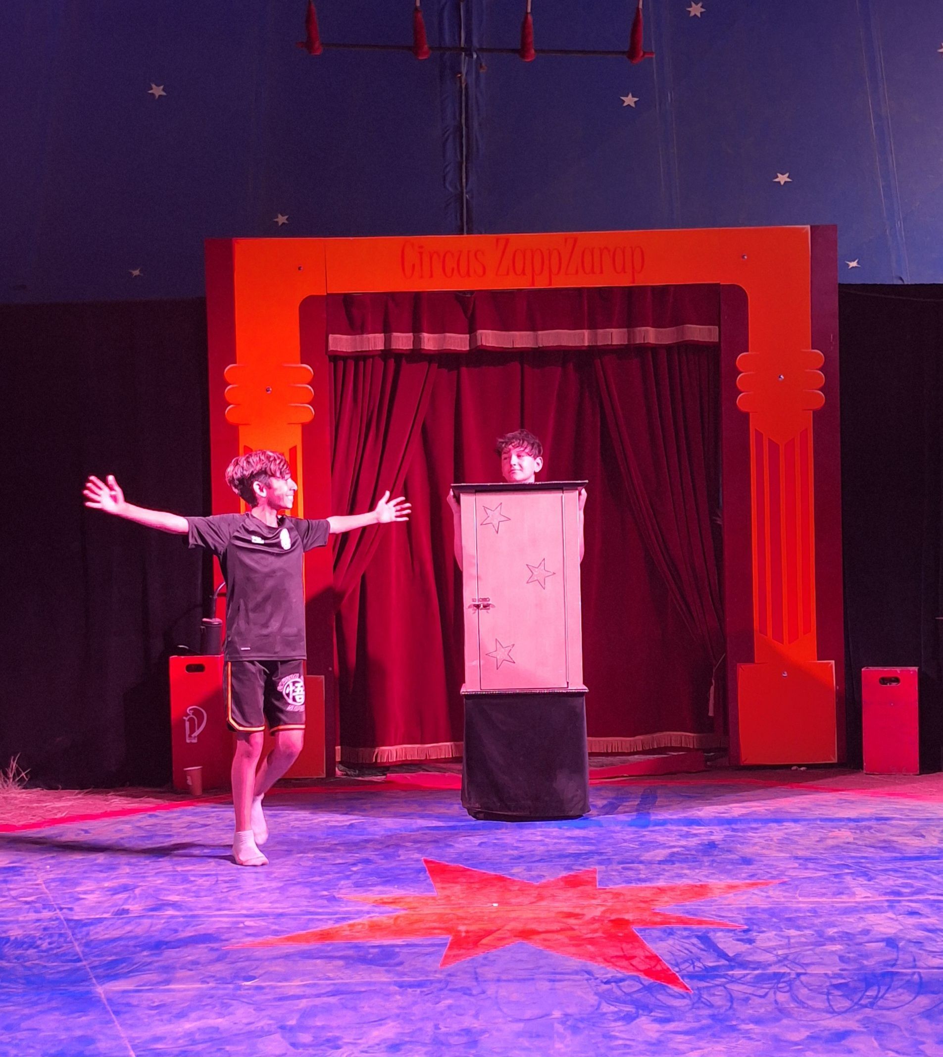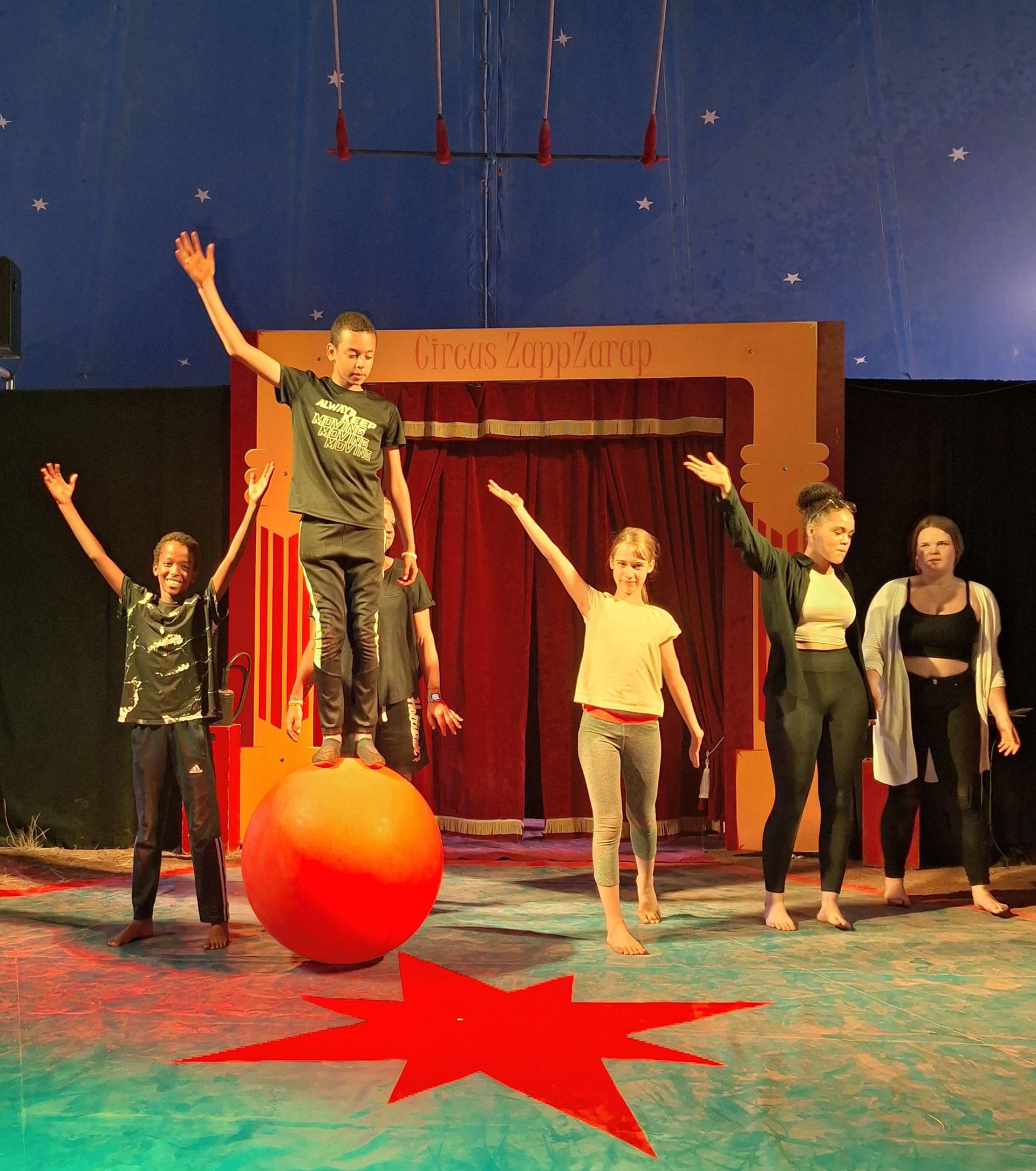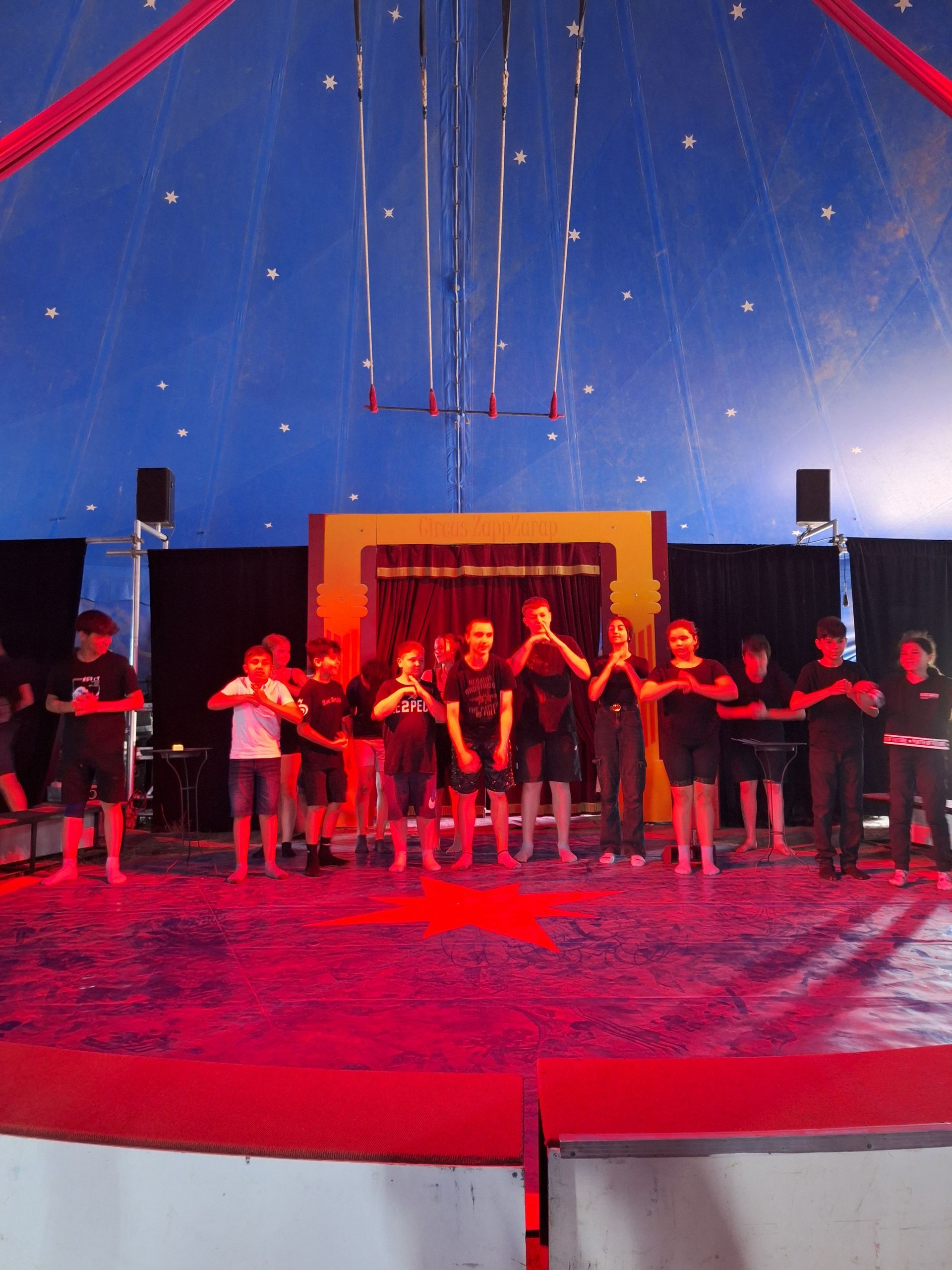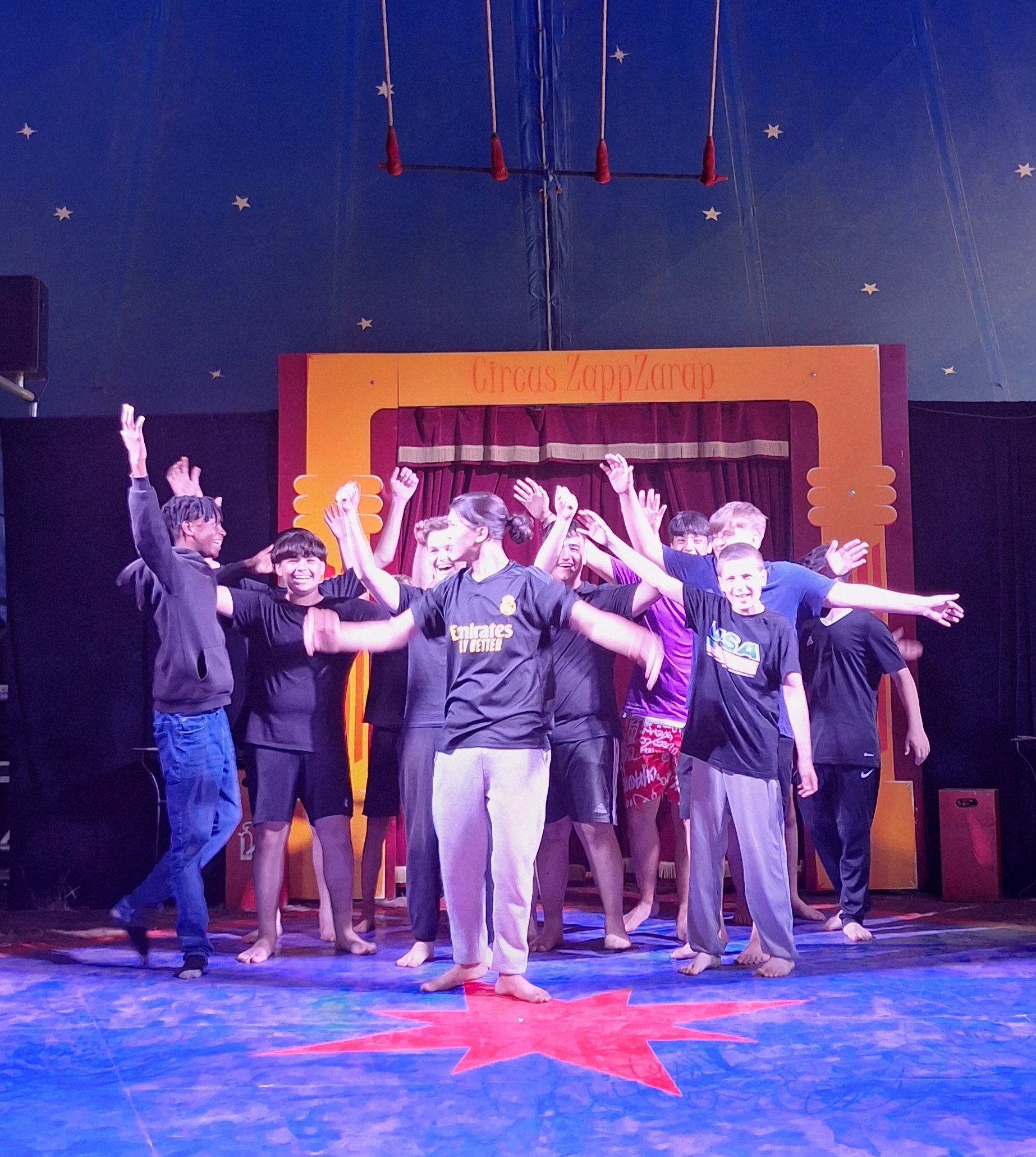 Nachdem am Sonntag in einem großartigen Arbeitseinsatz von Eltern, Lehrkräften und Schülern das weithin sichtbare Zirkuszelt auf unserem Gelände aufgebaut wurde, schlüpften die Schülerinnen und Schüler der 5. bis 8. Klassen - betreut vom Zirkus ZappZarap aus Leverkusen (zappzarap.de) - in die Rolle von Seiltänzern, Clowns, Trapezartisten, Jongleure, Zauberer und vieles mehr, um eine Woche lang für ihren Auftritt zu trainieren.