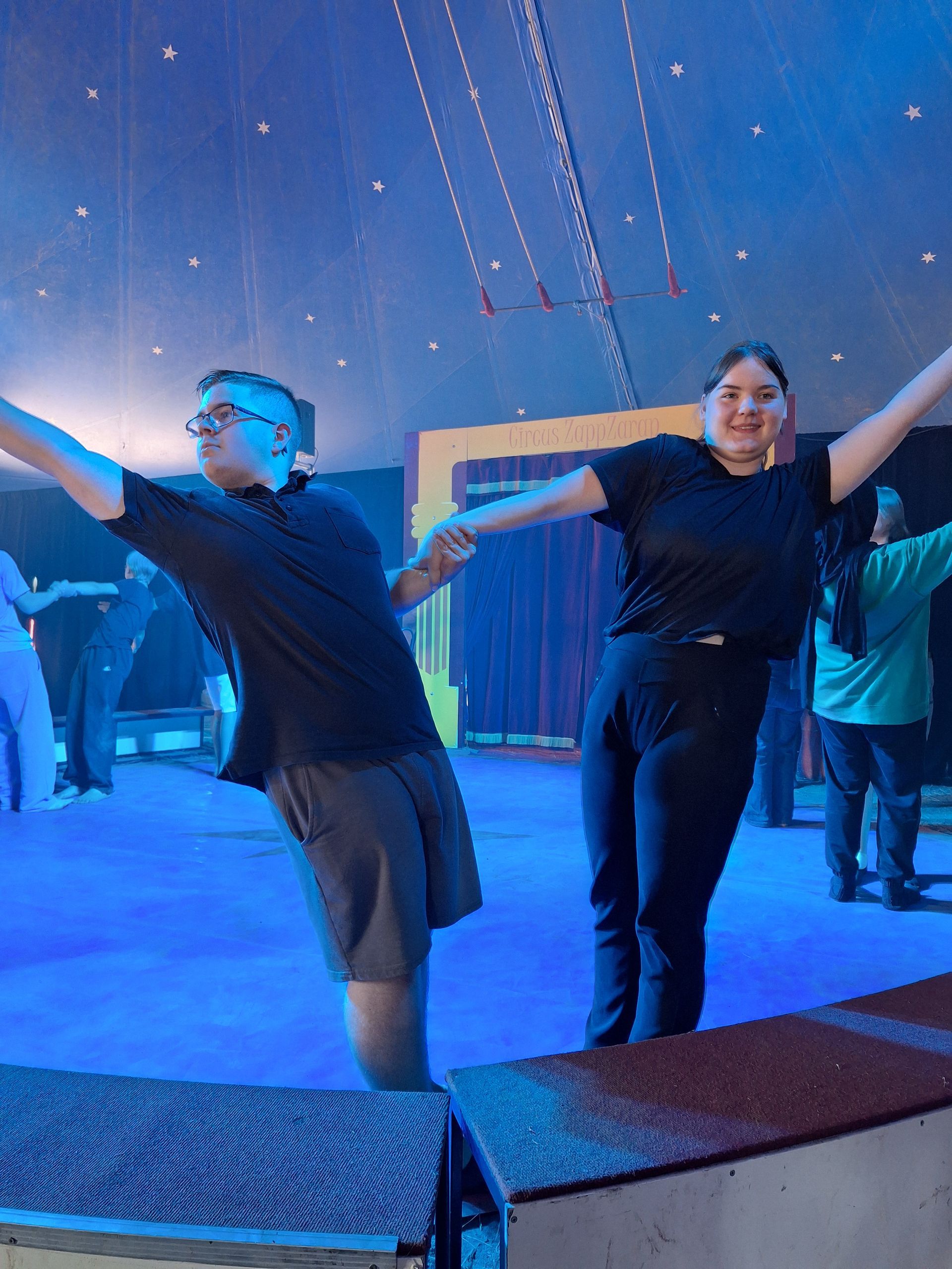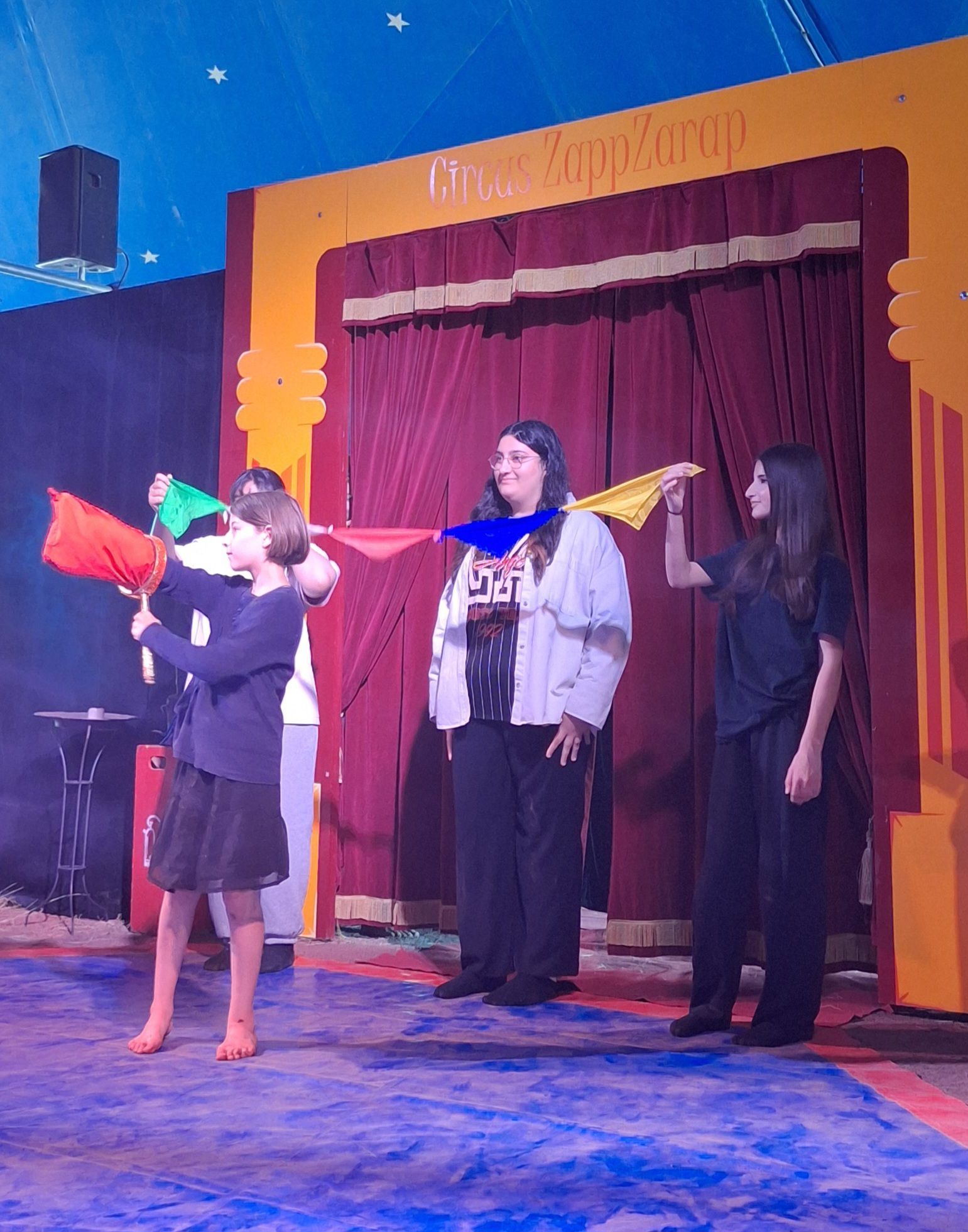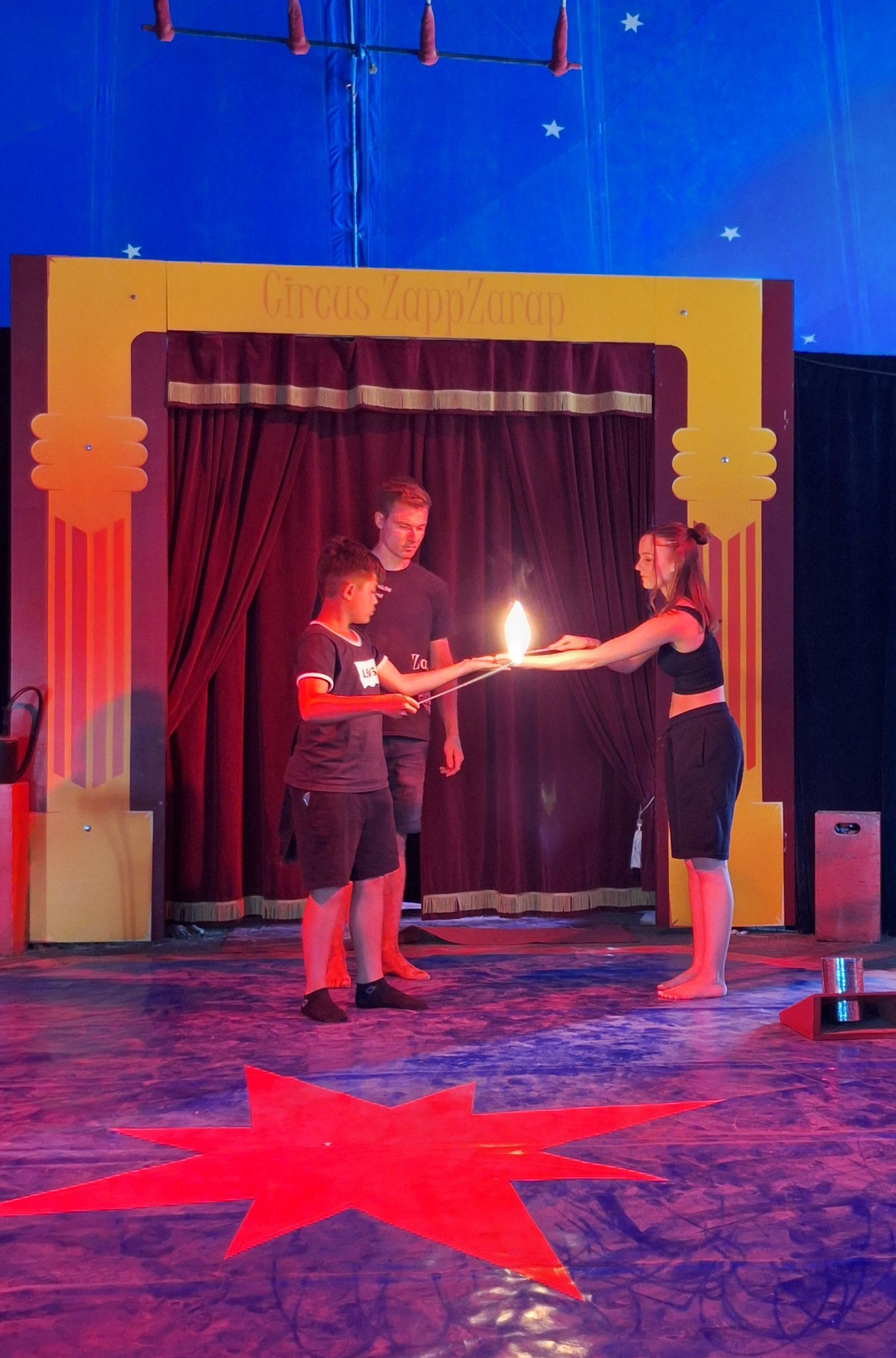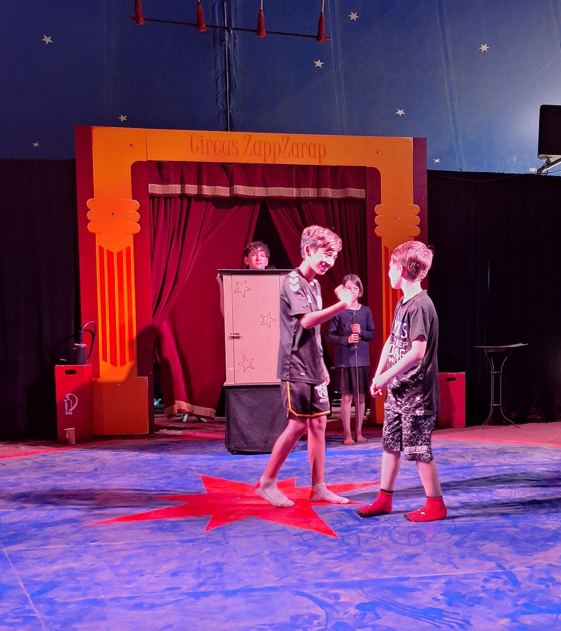 Nachdem am Sonntag in einem großartigen Arbeitseinsatz von Eltern, Lehrkräften und Schülern das weithin sichtbare Zirkuszelt auf unserem Gelände aufgebaut wurde, schlüpften die Schülerinnen und Schüler der 5. bis 8. Klassen - betreut vom Zirkus ZappZarap aus Leverkusen (zappzarap.de) - in die Rolle von Seiltänzern, Clowns, Trapezartisten, Jongleure, Zauberer und vieles mehr, um eine Woche lang für ihren Auftritt zu trainieren.