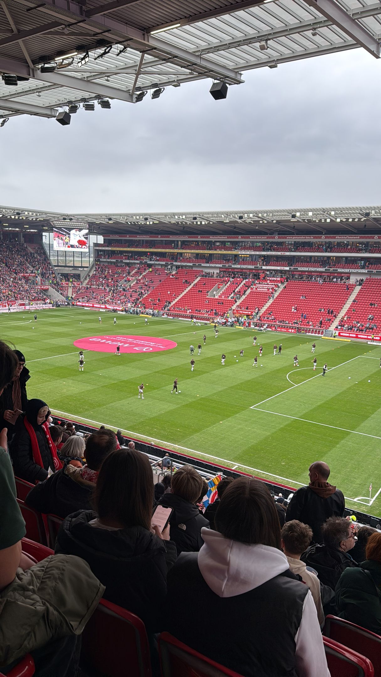 Dann waren wir mit der Stadionführung dran. Wir schauten uns erst einmal Räume in der Arena an, darunter der Aufwärmraum für die Fußballspieler, die Umkleiden, Garderoben der Spieler, den Pressekonferenzraum und die „Mixed-Zone“ bis wir zum Schluss an der Rasenkante standen, wo sonst nur die Profispieler und Trainer hinkommen. Zu allen Bereichen erhielten wir interessante Infos, konnten Fotos machen und es wurden uns alle Fragen beantwortet, die wir hatten. Wir durften uns sogar auf die VIP Sitzplätze setzen. Das war die letzte Station unserer Führung. Die Führung endete ca. um 13:30 Uhr und wir fuhren mit dem Zug zurück nach Bad Kreuznach. Wir kamen ungefähr um 15 Uhr an und wurden dort dann abgeholt.