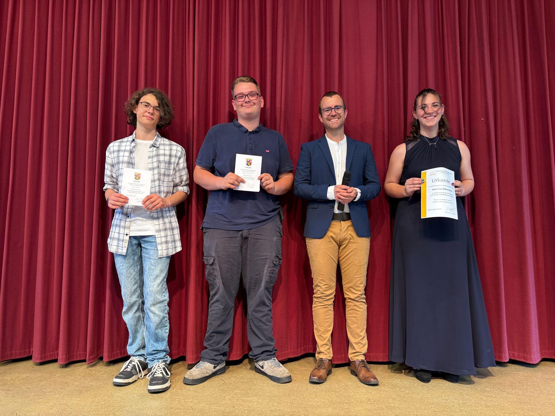 Besonders ausgezeichnet mit dem Preis des Bildungsministers Sven Teuber für besonderes soziales Engagement wurden Manuel Faust (10b) und David Rozinek (10a).