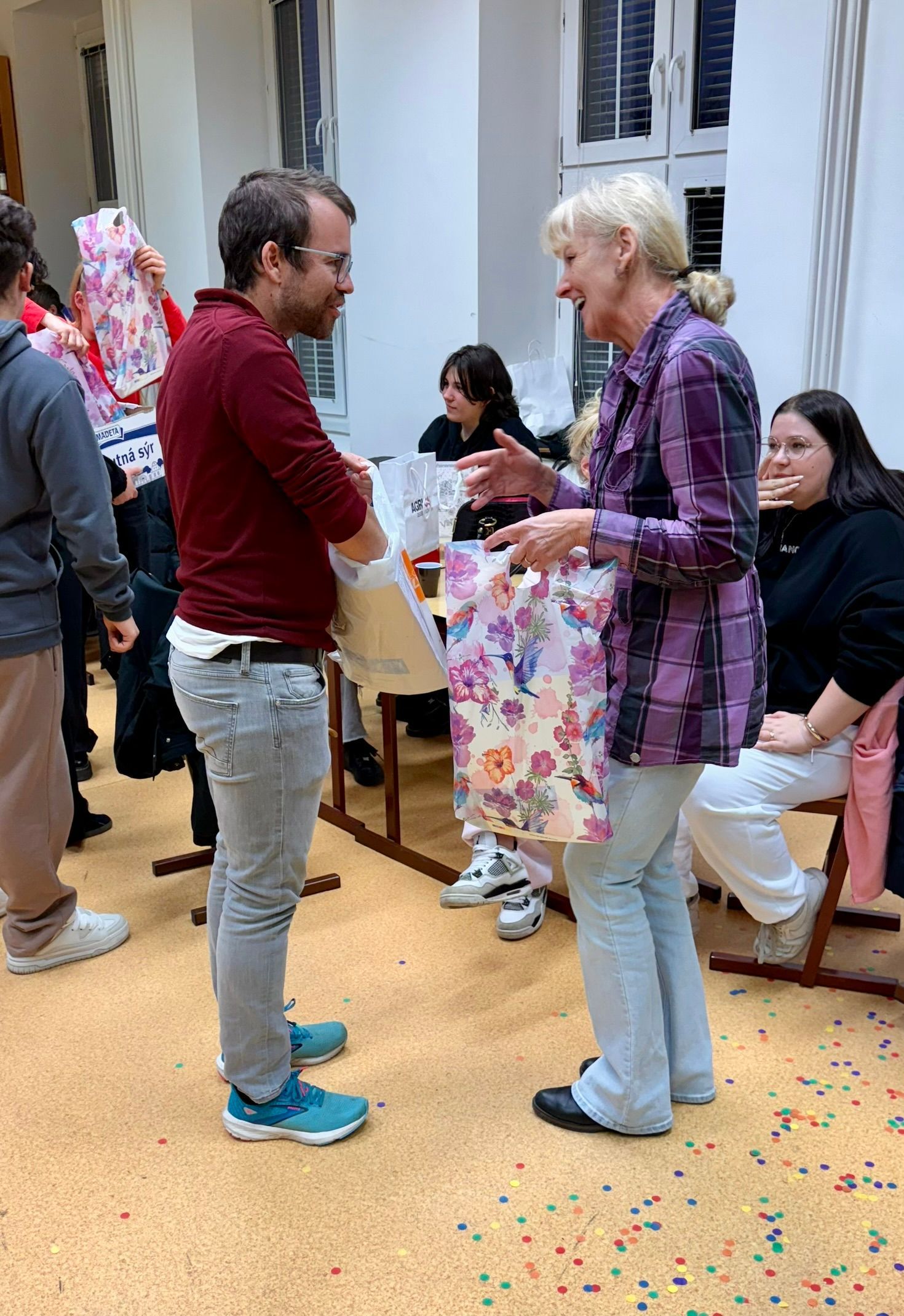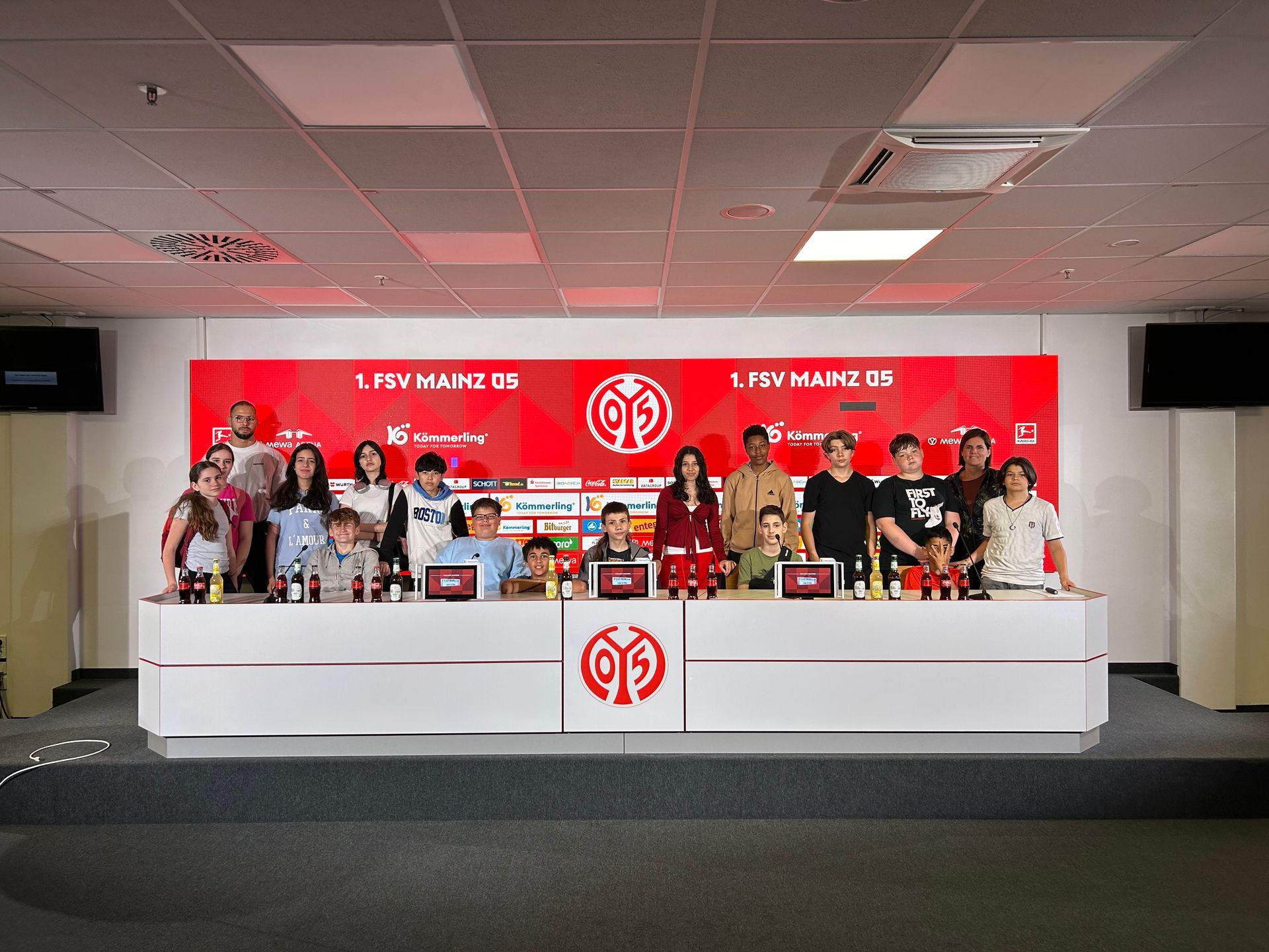 Um 17 Uhr endete der offizielle Teil. Danach gab es noch ein kleines Buffett mit Fingerfood und jede Partnerschule erhielt ein Präsent mit einem Schal, Trikot, Wimpel und einem 05 er Klassenzimmer-Schild zum Aufhängen in der Schule.