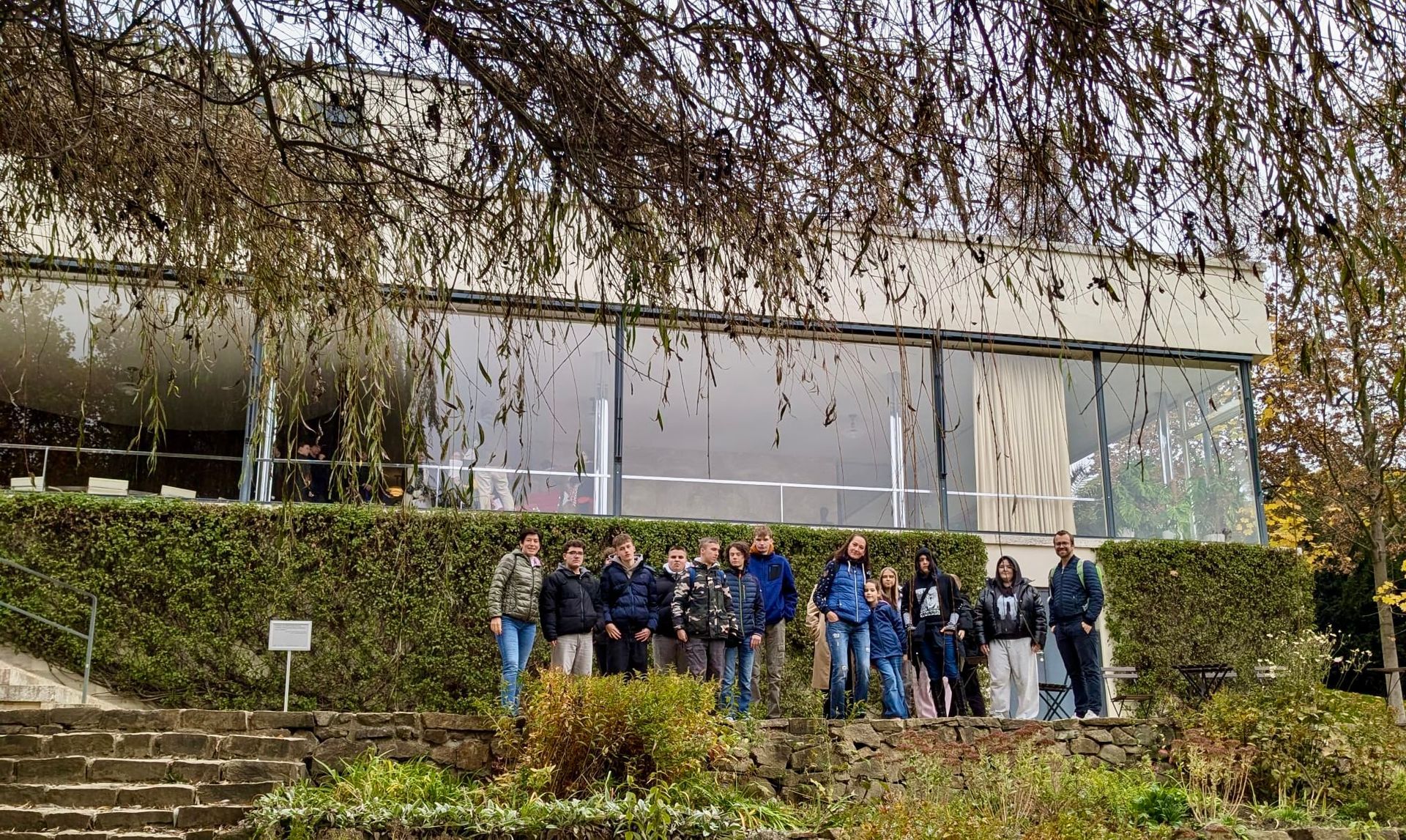Bereits von außen beeindruckte die Schülerschaft das Gebäude durch seine außergewöhnliche Architektur. Die Form der Synagoge erinnert an das hebräische Wort „Keduscha“ (Heiligkeit) und die Fassade ist mit hebräischen Buchstaben gestaltet – ein starkes Zeichen für jüdische Identität und religiöse Bedeutung. Die Architektur selbst versteht sich als Ausdruck jüdischen Glaubens und