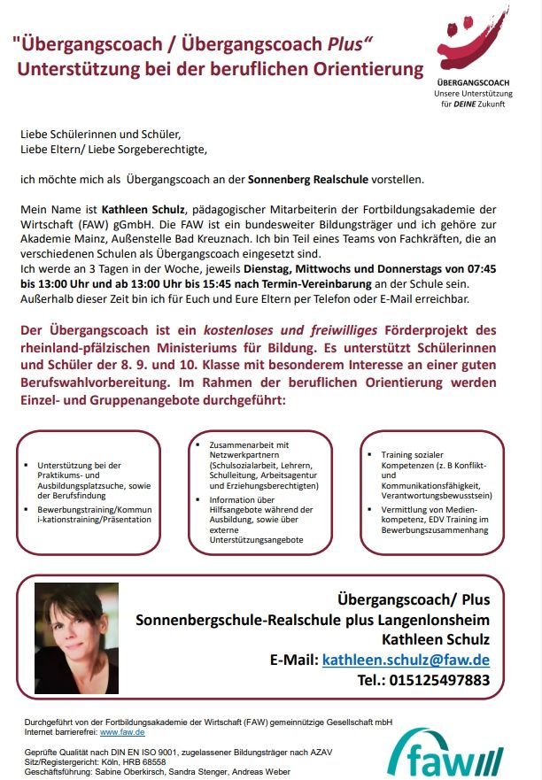 Als Übergangscoach ist Frau Kathleen Schulz an unserer Schule tätig.